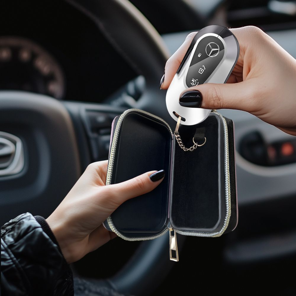 Wykonane z trwałych materiałów, etui zapewnia długotrwałe użytkowanie i odporność na uszkodzenia. jego kompaktowy design pozwala na łatwe przechowywanie w kieszeni lub torebce, oferując wygodę noszenia. Produkt jest uniwersalny, pasuje do większości kluczyków samochodowych z systemem keyless. Idealne rozwiązanie dla osób, które chcą zabezpieczyć swoje pojazdy przed nowoczesnymi metodami kradzieży.