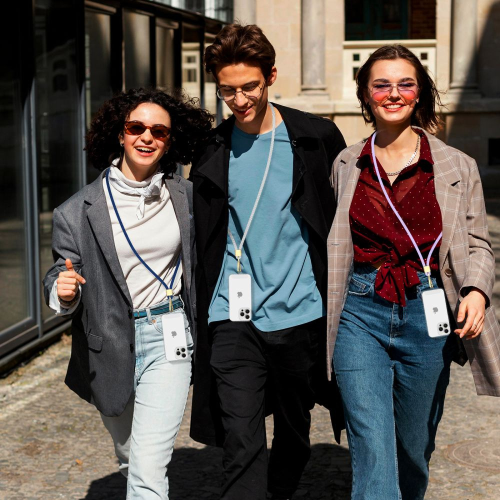 Wyposażony w adapter, który umieszczamy po wewnętrznej stronie etui, umożliwia bezpieczne i wygodne noszenie telefonu. Dzięki regulowanej długości sznurka, możemy przewiesić telefon przez ramię lub nosić go w dłoni, dostosowując sposób użytkowania do naszych potrzeb.