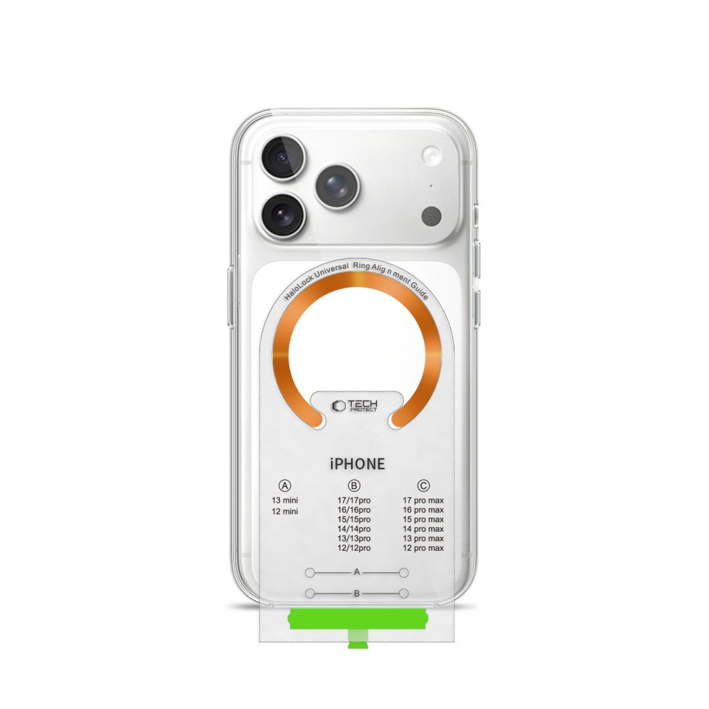 W zestawie znajduje się specjalna nakładka montażowa, która znacznie ułatwia precyzyjną instalację pierścienia na obudowie telefonu. Dzięki niej uzyskasz idealne wyśrodkowanie i dokładne pozycjonowanie magnetów względem centrum urządzenia, co jest kluczowe dla prawidłowego działania z akcesoriami MagSafe.