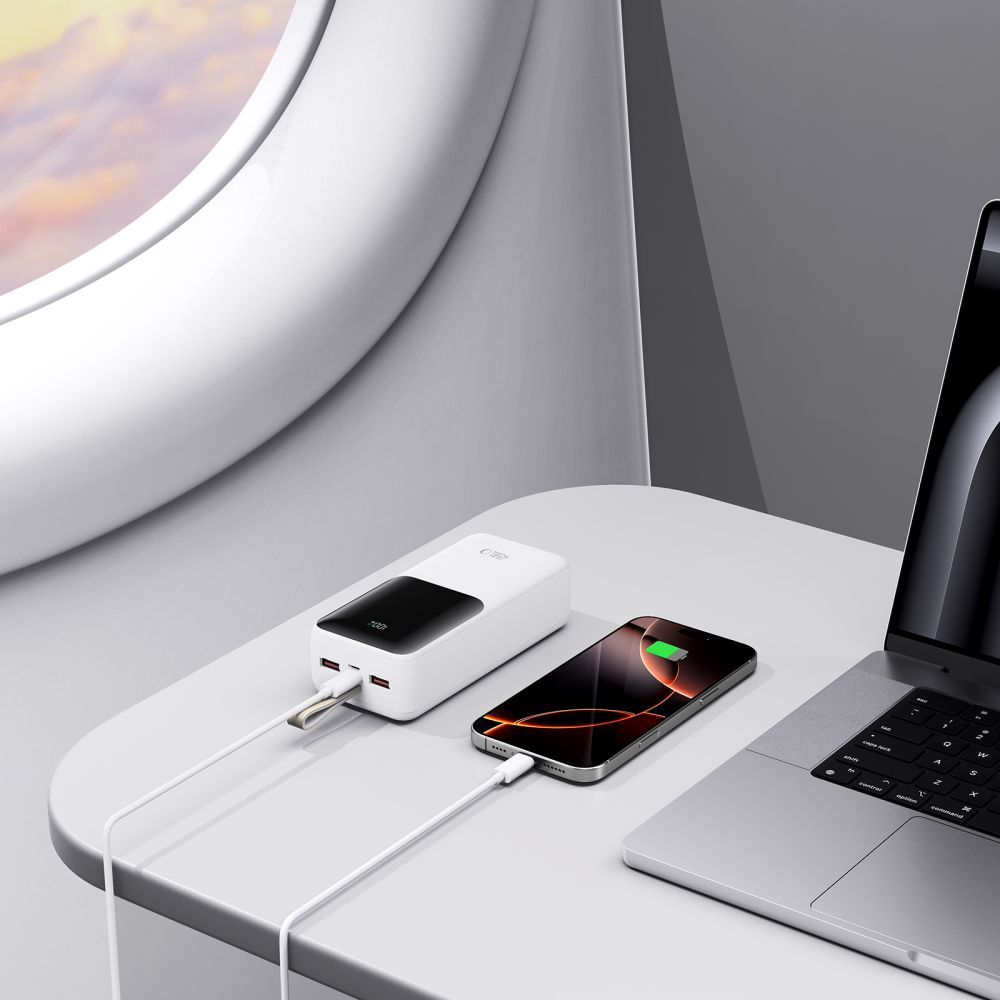 Tech-Protect PB03 Power Bank 30000mAh 22.5W to wyjątkowo wydajne i niezawodne urządzenie zaprojektowane dla osób, które potrzebują potężnego źródła energii w każdej sytuacji. Dzięki ogromnej pojemności 30 000 mAh, ten power bank pozwala wielokrotnie naładować smartfony, tablety, a nawet laptopy, zapewniając niezawodność podczas długich podróży, intensywnego dnia pracy lub codziennego użytkowania.