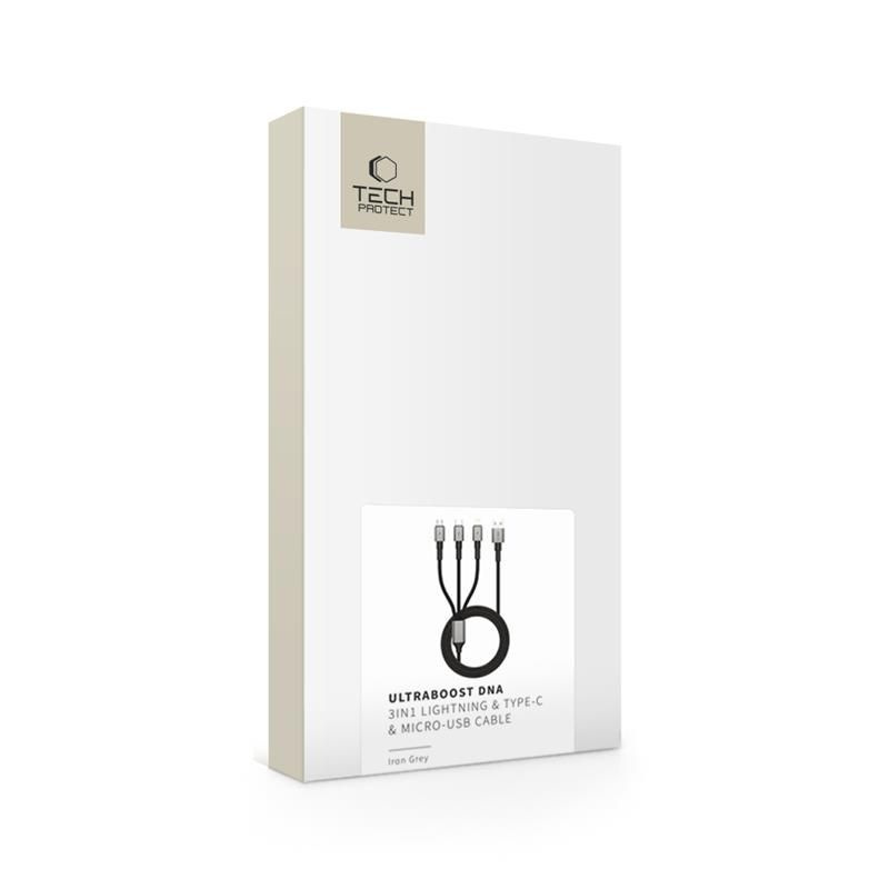 TECH-PROTECT ULTRABOOST DNA 3IN1 LIGHTNING & TYPE-C & MICRO-USB CABLE 3A 120CM IRON GREY